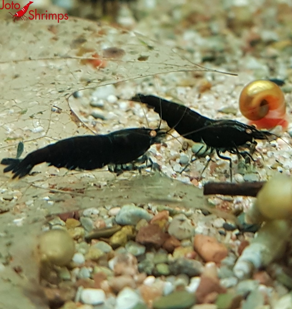 Die schwarze Tiger Garnele OE entstand durch Einkreuzung von blauen Tiger Garnelen OE, in die erstmals als Mutation aufgetretenen schwarzen Tiger Garnelen des Züchters Kai A. Quante. Die schwarze Tigerstreifen überlagern den Körper in unterschiedlicher Intensität, dadurch teilt man die Tiere in 5 unterschiedliche Klassifizierungen ein. Die Einteilung geht von flächig schwarz BT1, bis zu einer ca. 50%igen Farbdeckung bei der eine Tigerzeichnung deutlich sichtbar ist, BT5. Die Streifen sind hier dennoch stark ausgeprägt. Bei dieser Zuchtform erfolgt hinter der BT Kennung die Bezeichnung OE. Nach langer Suche nach geeigneten Zuchttieren, haben wir in unseren Garnelen Tiere gefunden die man als schwarz bezeichnen kann. Da leider bei vielen Stämmen der Blauanteil, der in geringer Form immer vorhanden ist überwiegt und die Tiere von daher eigentlich tief dunkel Blau und nicht schwarz sind.Wissenschaftlicher Name: Caridina mariae