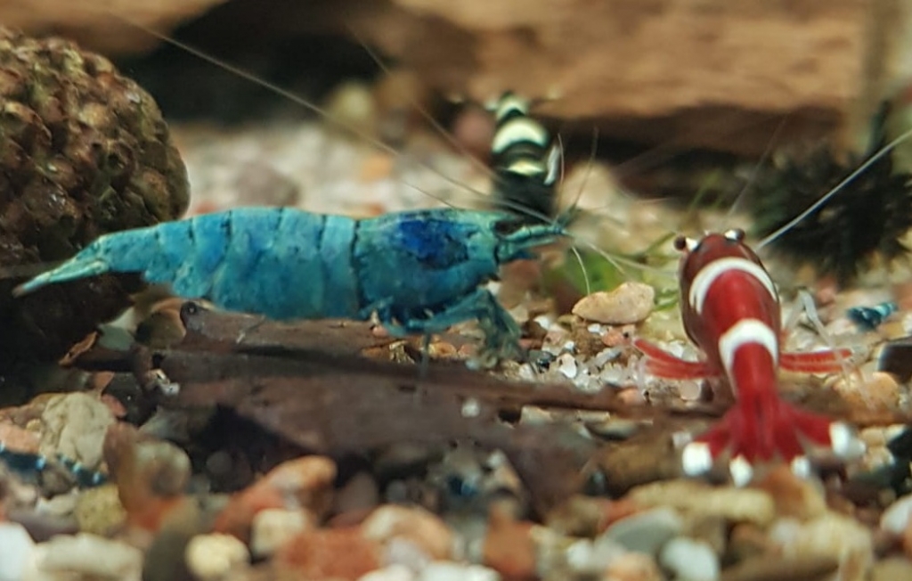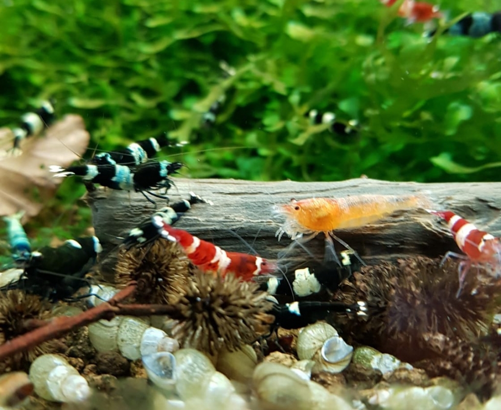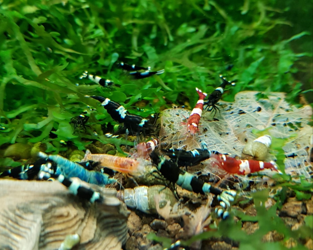 Buntes Taiwan Mix Paket, bestehend aus verschiedenen Taiwan Garnelen. 10 Tiere von z.B. Taiwan Panda, Taiwan Blue Bolt bis hin zu Taiwan Red Ruby oder Red Wine. Lassen Sie sich überraschen!Wissenschaftlicher Name : Caridina sp. Deutscher Name : Shadow Bee, Taiwan Bee Herkunft/Verbreitung : Zuchtform (Taiwan) Farbgebung : satte und intensive Färbung, schwarz/weiß gebändert, rot/weiß gebändert, blau/rot schattiert Größe : bis 3 cm Alterserwartung : 1,5 bis 2 Jahre