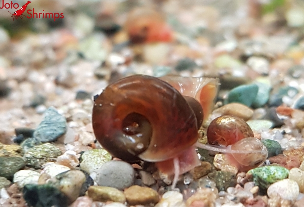 Braune bzw. naturfarbene Farbform der kleinen Posthornschnecke.